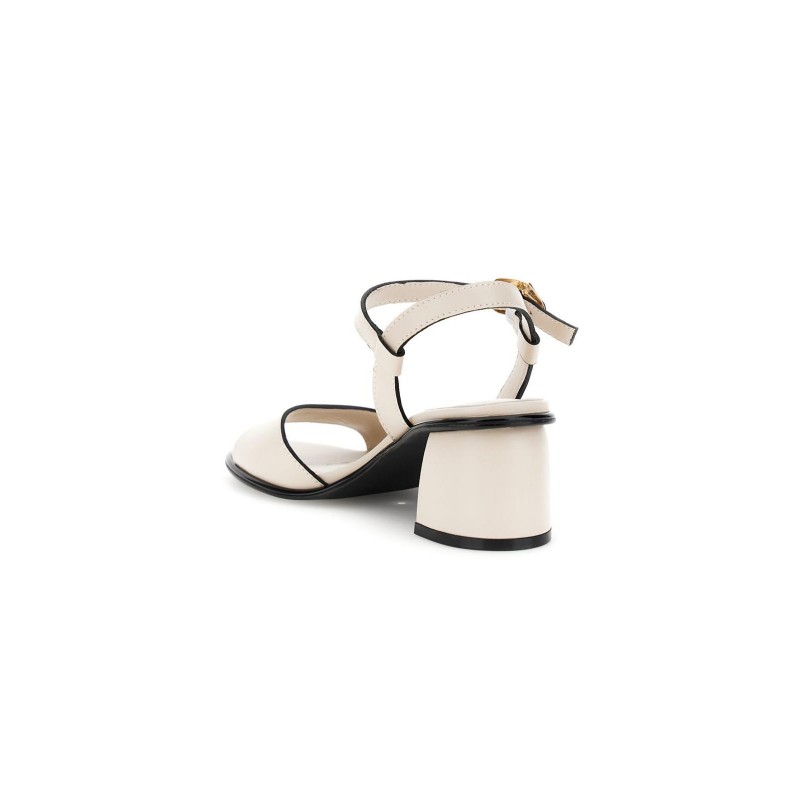 Sandali modello gilda effetto pelle con fibbia dorata fascia essenziale e soletto in pelle per comfort quotidiano. tacco largo di 6 cm stabile e femminile. calzatura ideale per completare con stile ogni look estivo.